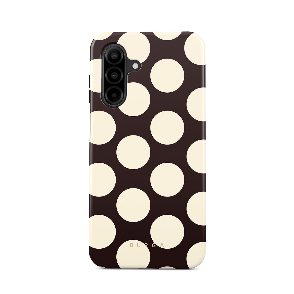 Kenmerken van dit design: grote crèmekleurige stippen op een donkere achtergrond.