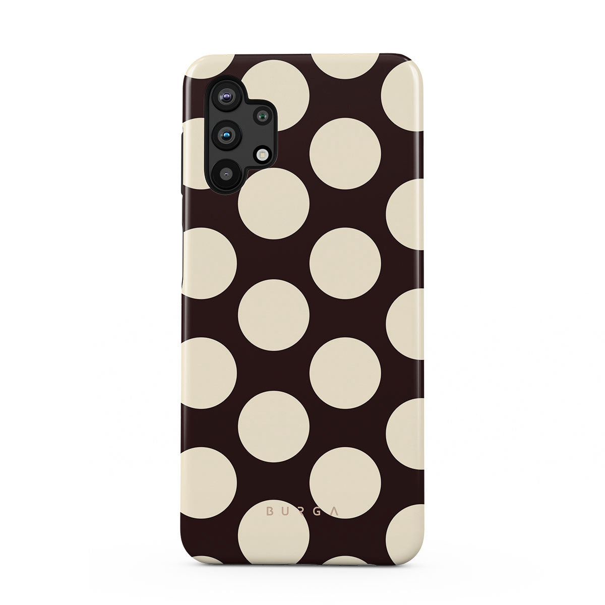 Kenmerken van dit design: grote crèmekleurige stippen op een donkere achtergrond.