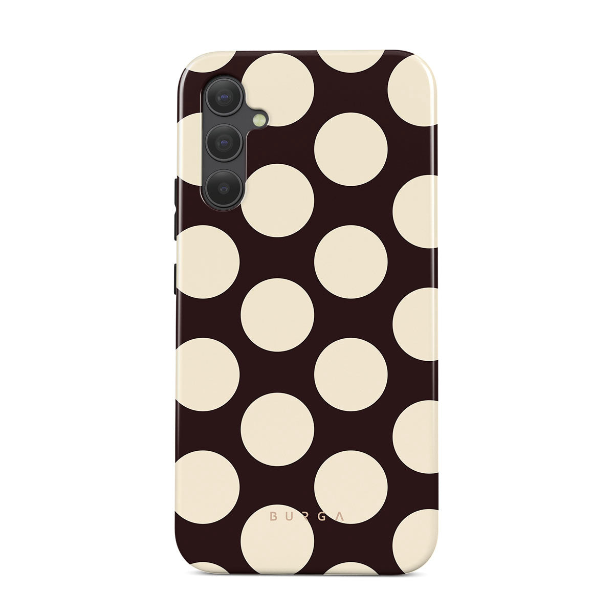 Kenmerken van dit design: grote crèmekleurige stippen op een donkere achtergrond.