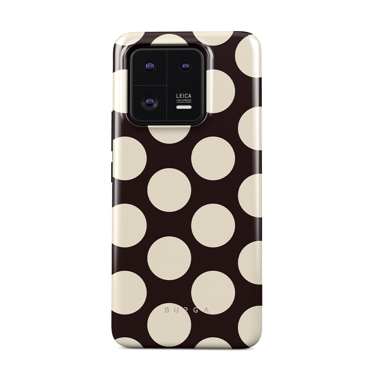 Kenmerken van dit design: grote crèmekleurige stippen op een donkere achtergrond.