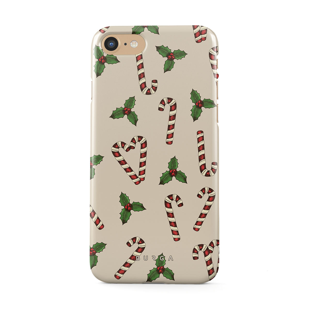 Dit ontwerp heeft: zuurstokken, hulst, groen, wit, feestelijk patroon