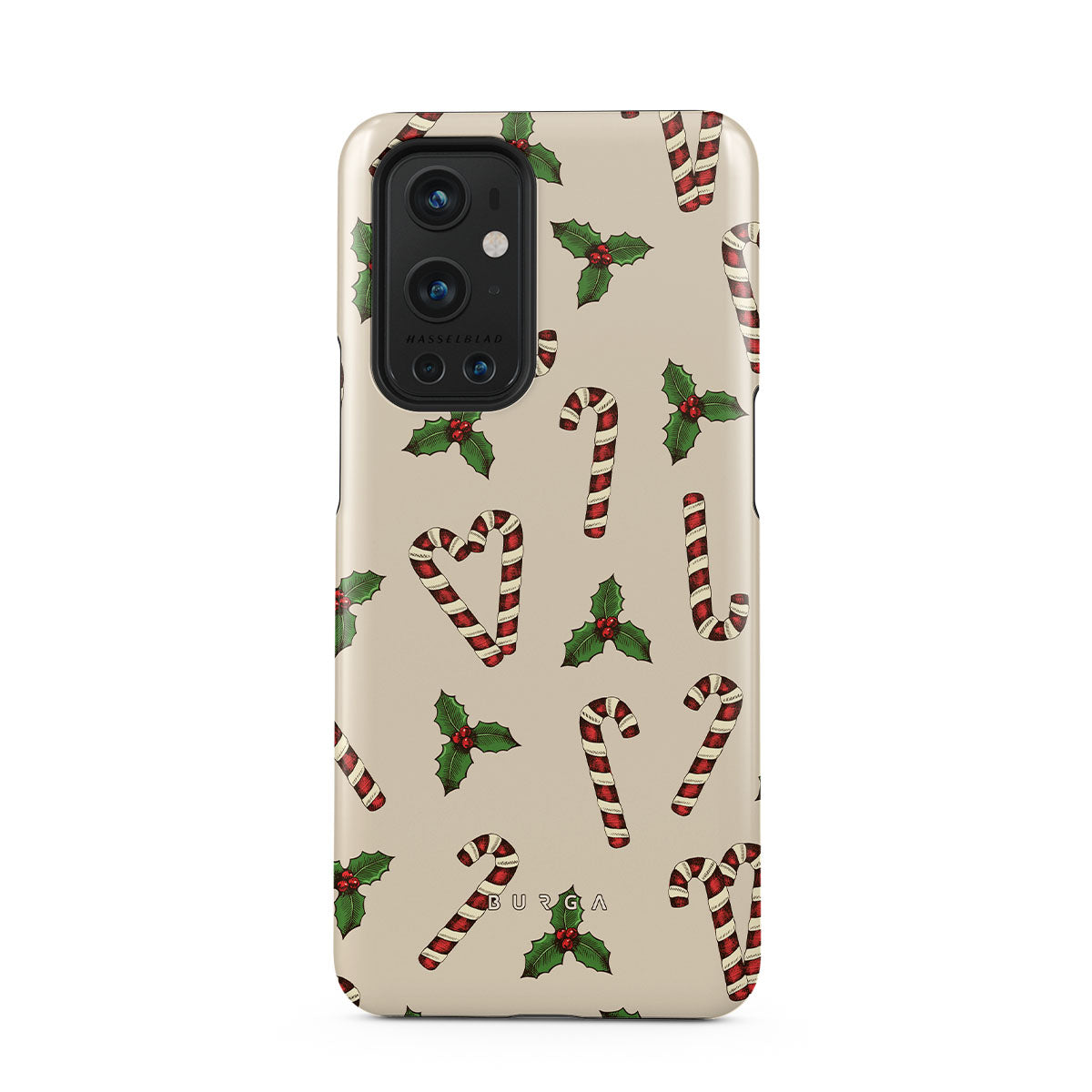 Dit ontwerp heeft: zuurstokken, hulst, groen, wit, feestelijk patroon