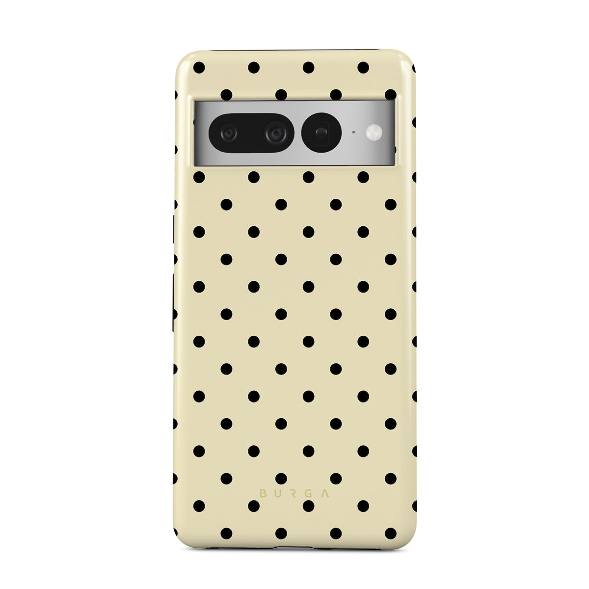 Kenmerken van dit design: een beige achtergrond met kleine zwarte stippen.