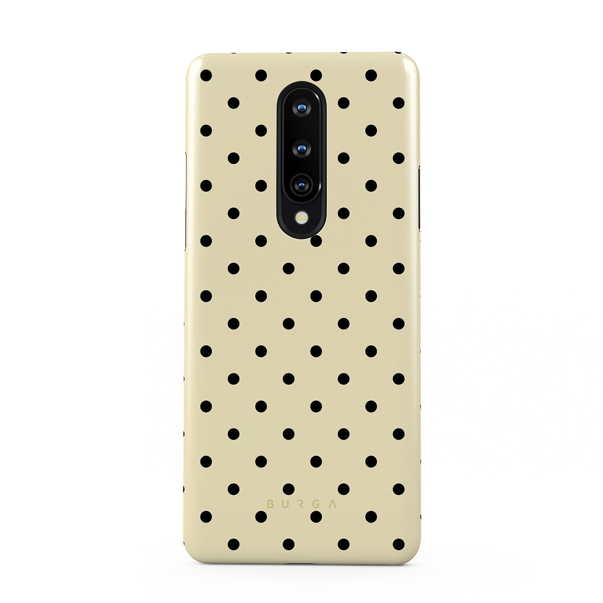 Kenmerken van dit design: een beige achtergrond met kleine zwarte stippen.