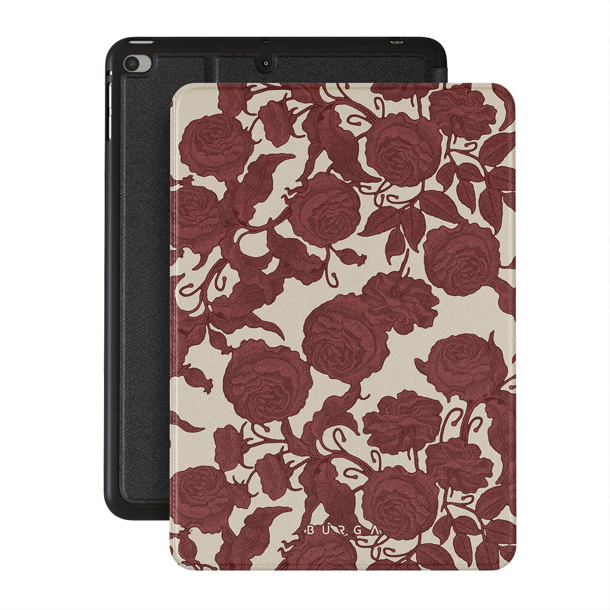 Dit ontwerp bevat: donkerrode rozen, ingewikkeld bloemmotief, vintage patroon.