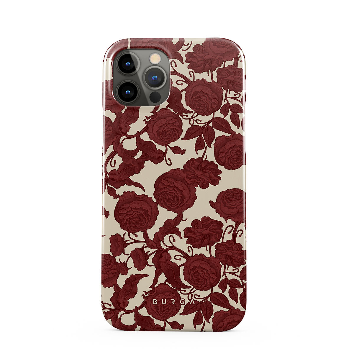 Dit ontwerp bevat: donkerrode rozen, ingewikkeld bloemmotief, vintage patroon.