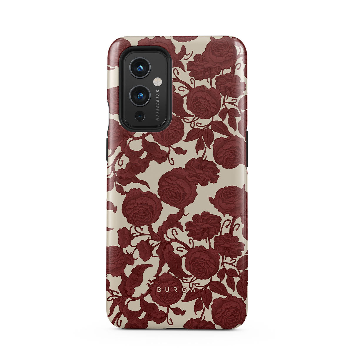 Dit ontwerp bevat: donkerrode rozen, ingewikkeld bloemmotief, vintage patroon.