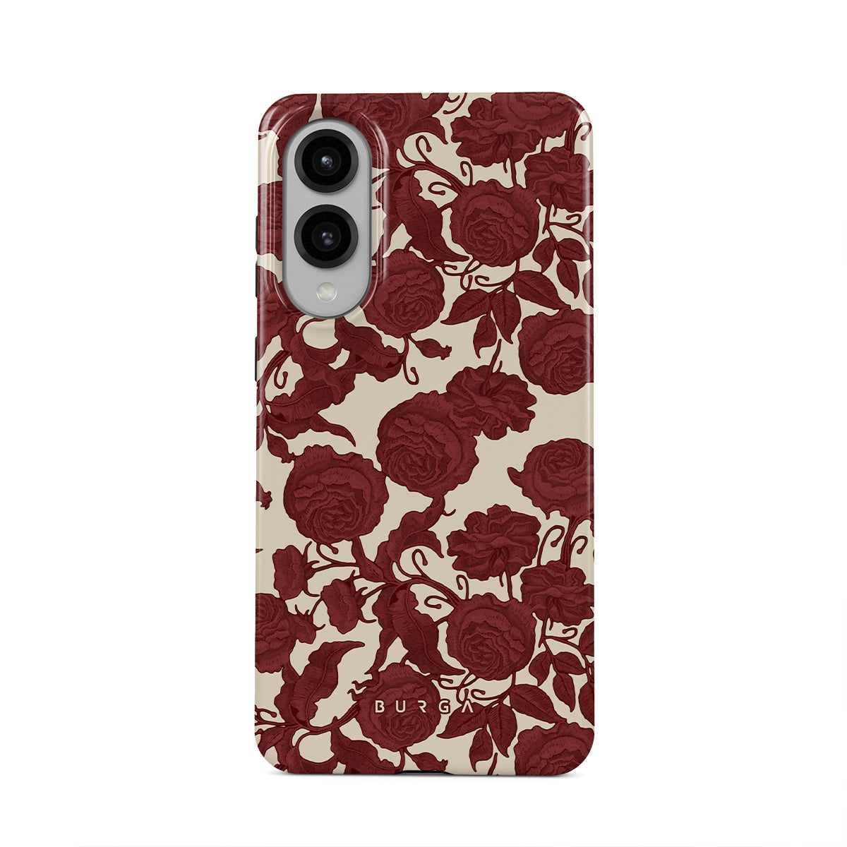 Dit ontwerp bevat: donkerrode rozen, ingewikkeld bloemmotief, vintage patroon.