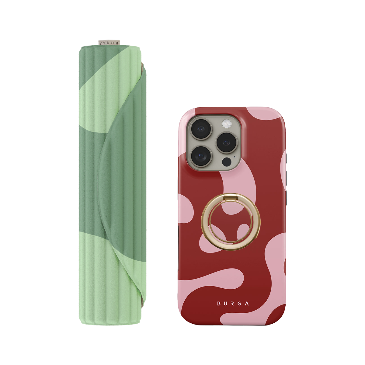Jouw vaste trio: Het hoesje houdt je telefoon safe. De mat houdt je gegrond. De ringhouder houdt je scherm steady – zelfs met zweethanden.