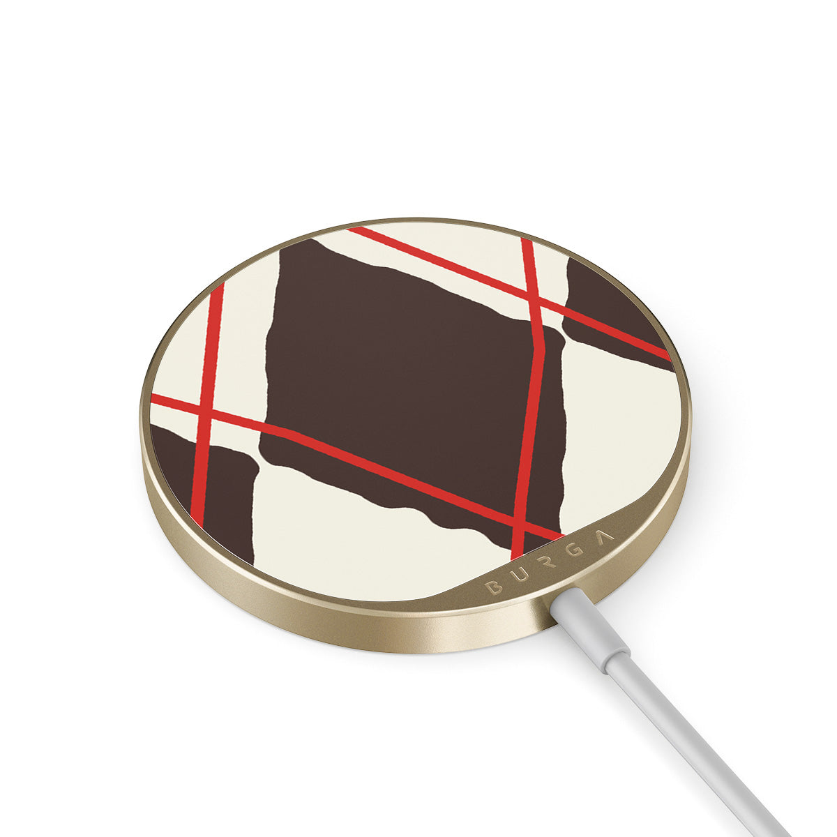 Met de geïntegreerde kabel van 1,5 m kun je eenvoudig opladen, waar je ook bent: op kantoor, op de bank of in de lounge op het vliegveld. Bovendien kies je dankzij de glazen achterkant van BURGA uit 500+ prints, dus je oplader ziet er altijd even goed uit als je hoesje.