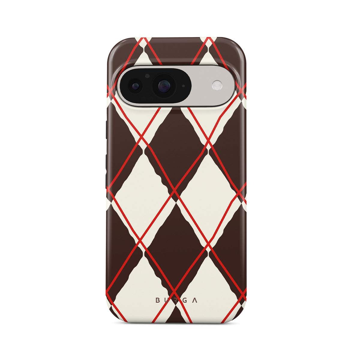 Kenmerken van dit design: ruitpatroon, bruin en crème, klassiek patroon, geometrisch patroon