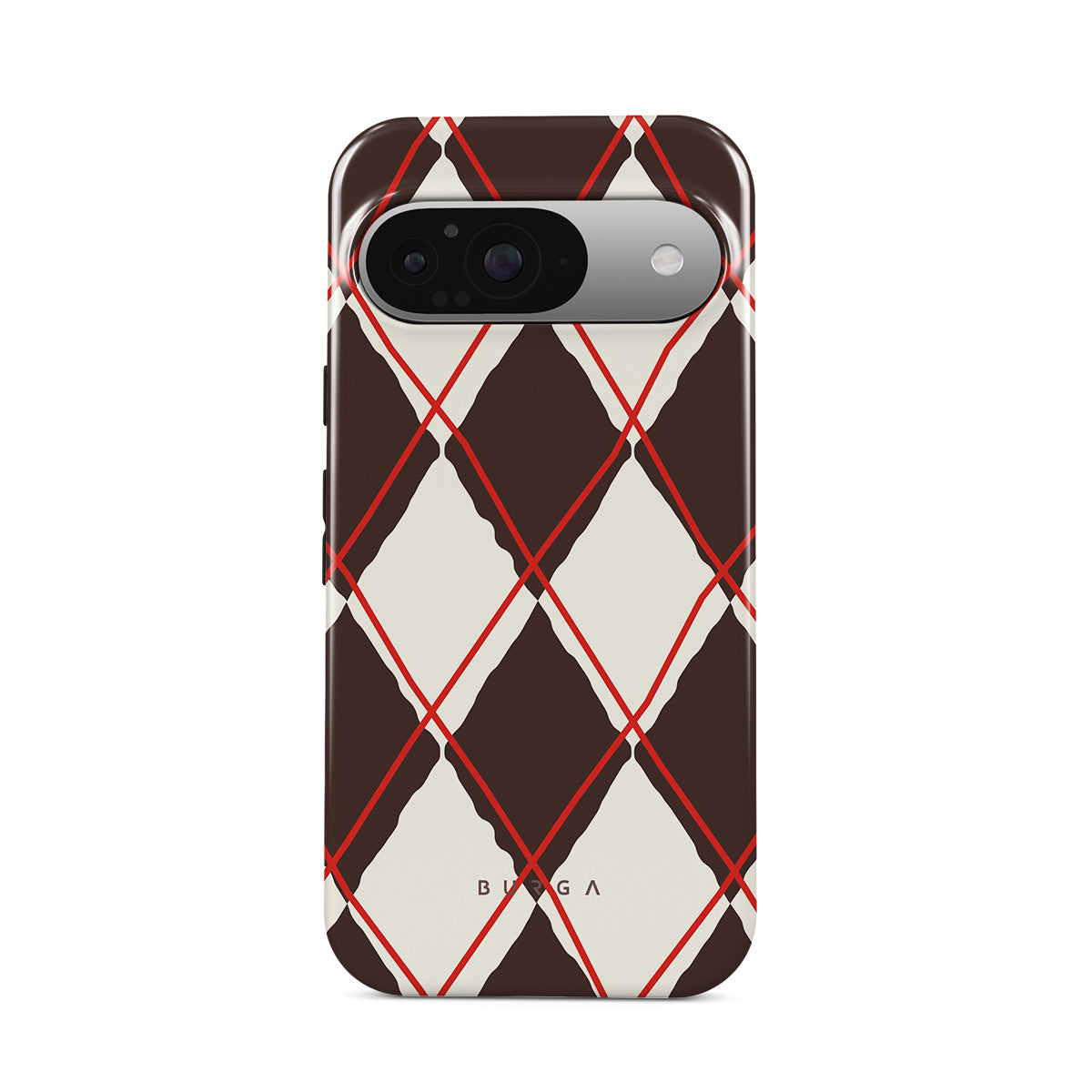 Kenmerken van dit design: ruitpatroon, bruin en crème, klassiek patroon, geometrisch patroon