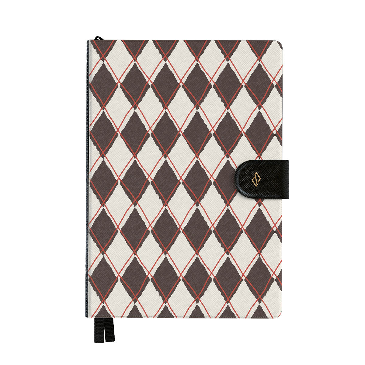 Uitgevoerd in strak veganistisch saffiano leer en vastgezet met een stijlvolle magnetische sluiting, is het stevig genoeg om koffievlekken en kleine ongelukjes te weerstaan.