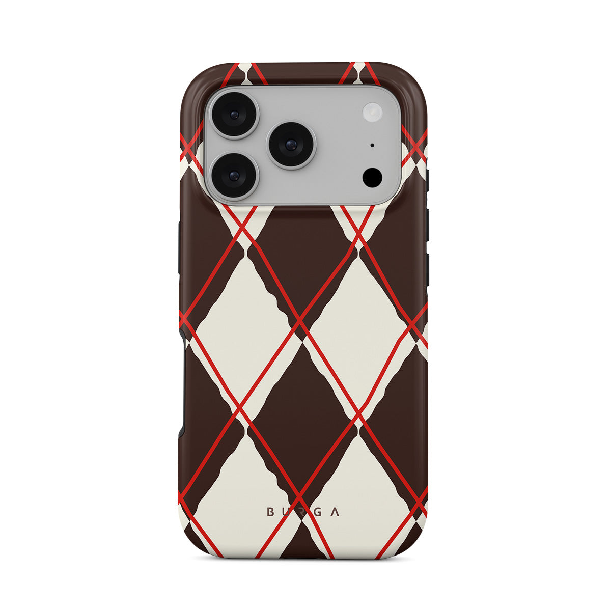 Kenmerken van dit design: ruitpatroon, bruin en crème, klassiek patroon, geometrisch patroon
