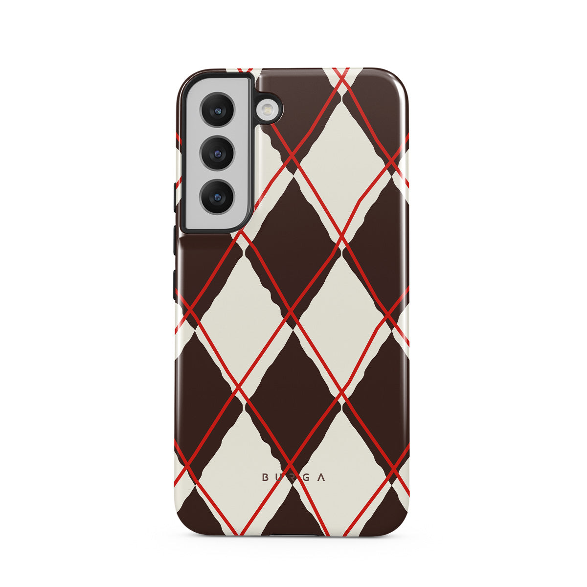 Kenmerken van dit design: ruitpatroon, bruin en crème, klassiek patroon, geometrisch patroon