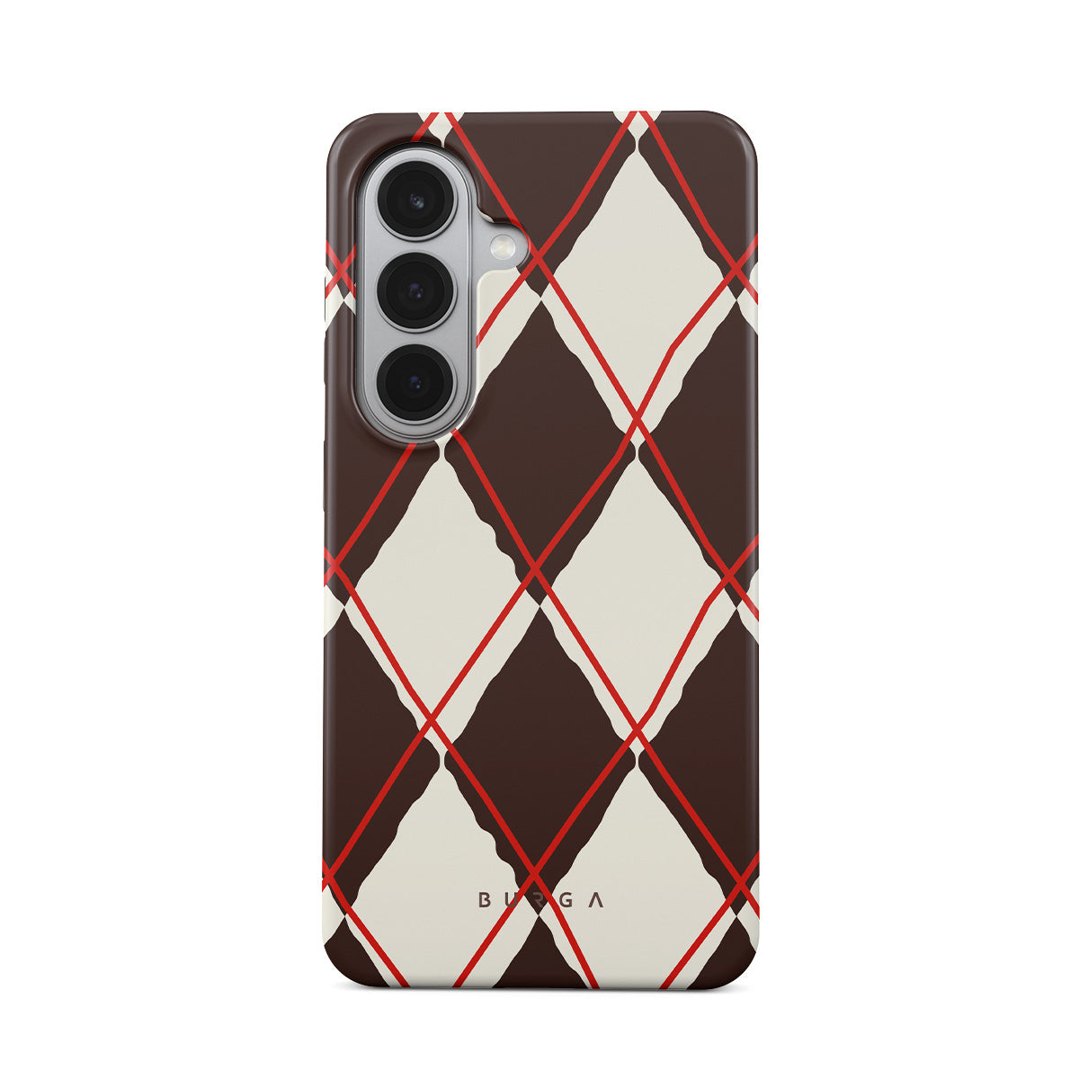 Kenmerken van dit design: ruitpatroon, bruin en crème, klassiek patroon, geometrisch patroon
