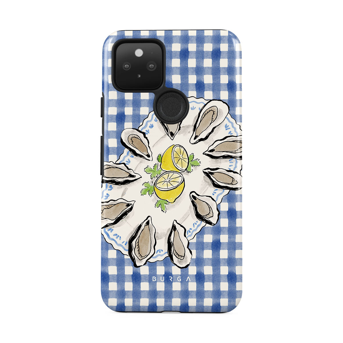Kenmerken van dit design: Oesters, citroen, blauwe gingham, frisse kustmotieven, zachte pasteltinten.