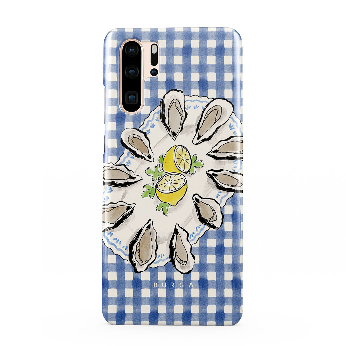 Kenmerken van dit design: Oesters, citroen, blauwe gingham, frisse kustmotieven, zachte pasteltinten.