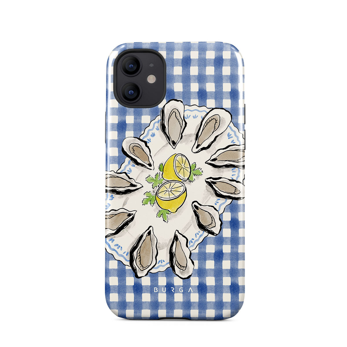 Kenmerken van dit design: Oesters, citroen, blauwe gingham, frisse kustmotieven, zachte pasteltinten.