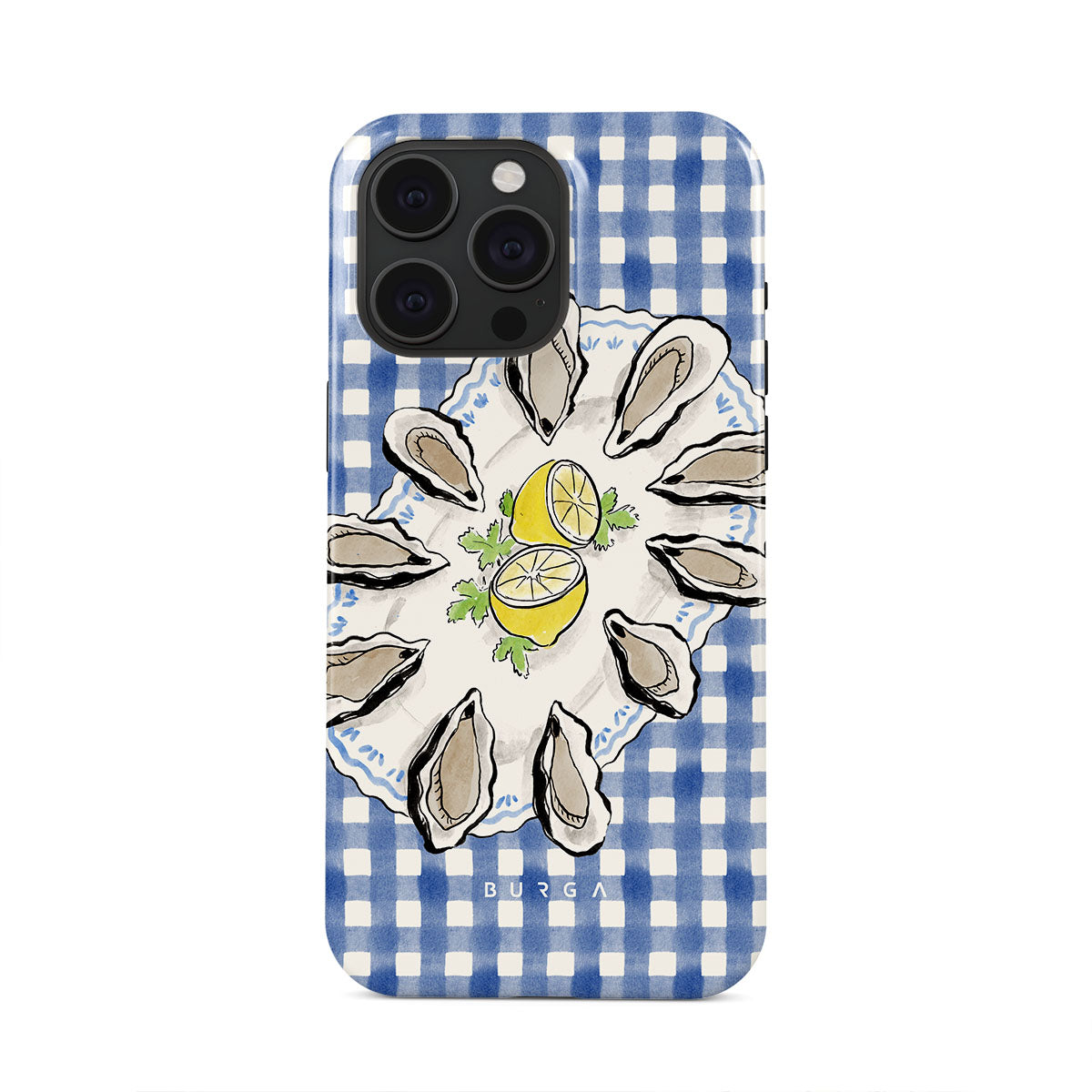 Kenmerken van dit design: Oesters, citroen, blauwe gingham, frisse kustmotieven, zachte pasteltinten.
