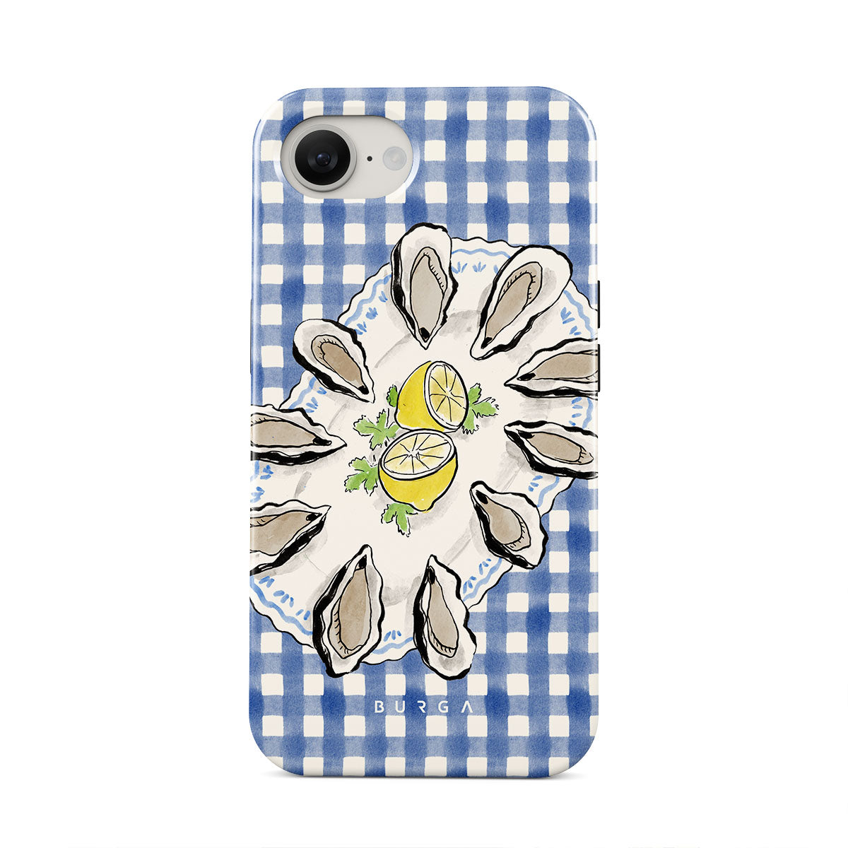 Kenmerken van dit design: Oesters, citroen, blauwe gingham, frisse kustmotieven, zachte pasteltinten.