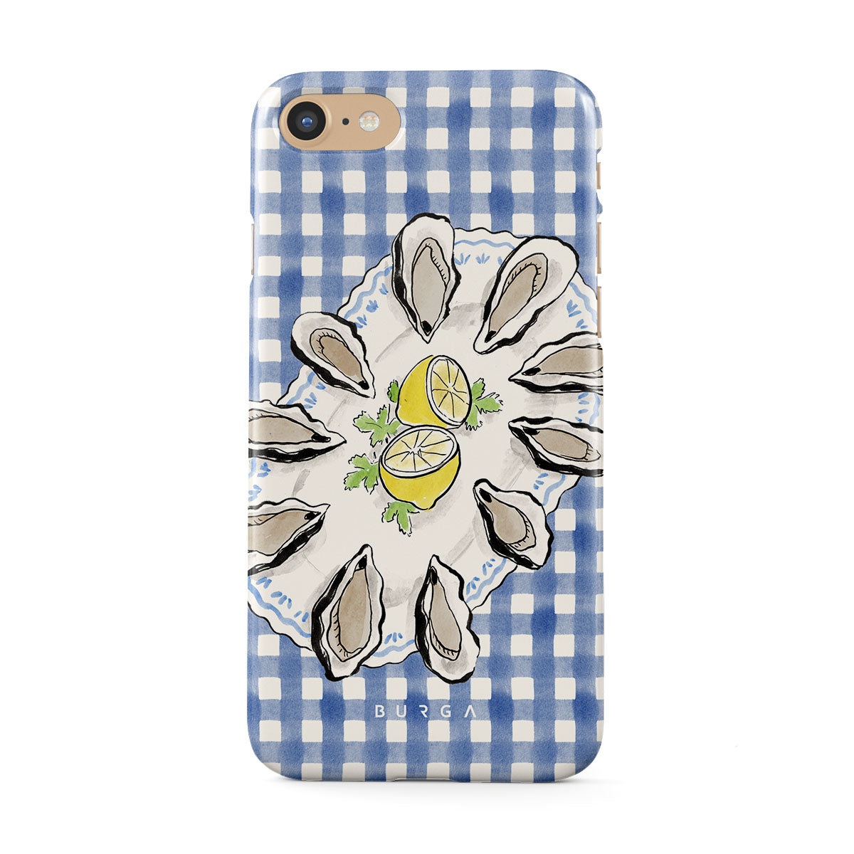 Kenmerken van dit design: Oesters, citroen, blauwe gingham, frisse kustmotieven, zachte pasteltinten.
