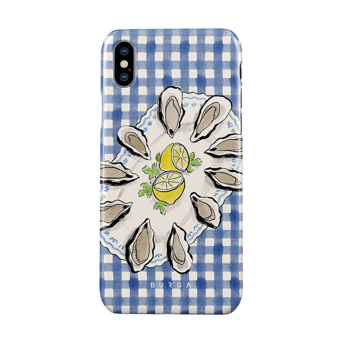Kenmerken van dit design: Oesters, citroen, blauwe gingham, frisse kustmotieven, zachte pasteltinten.