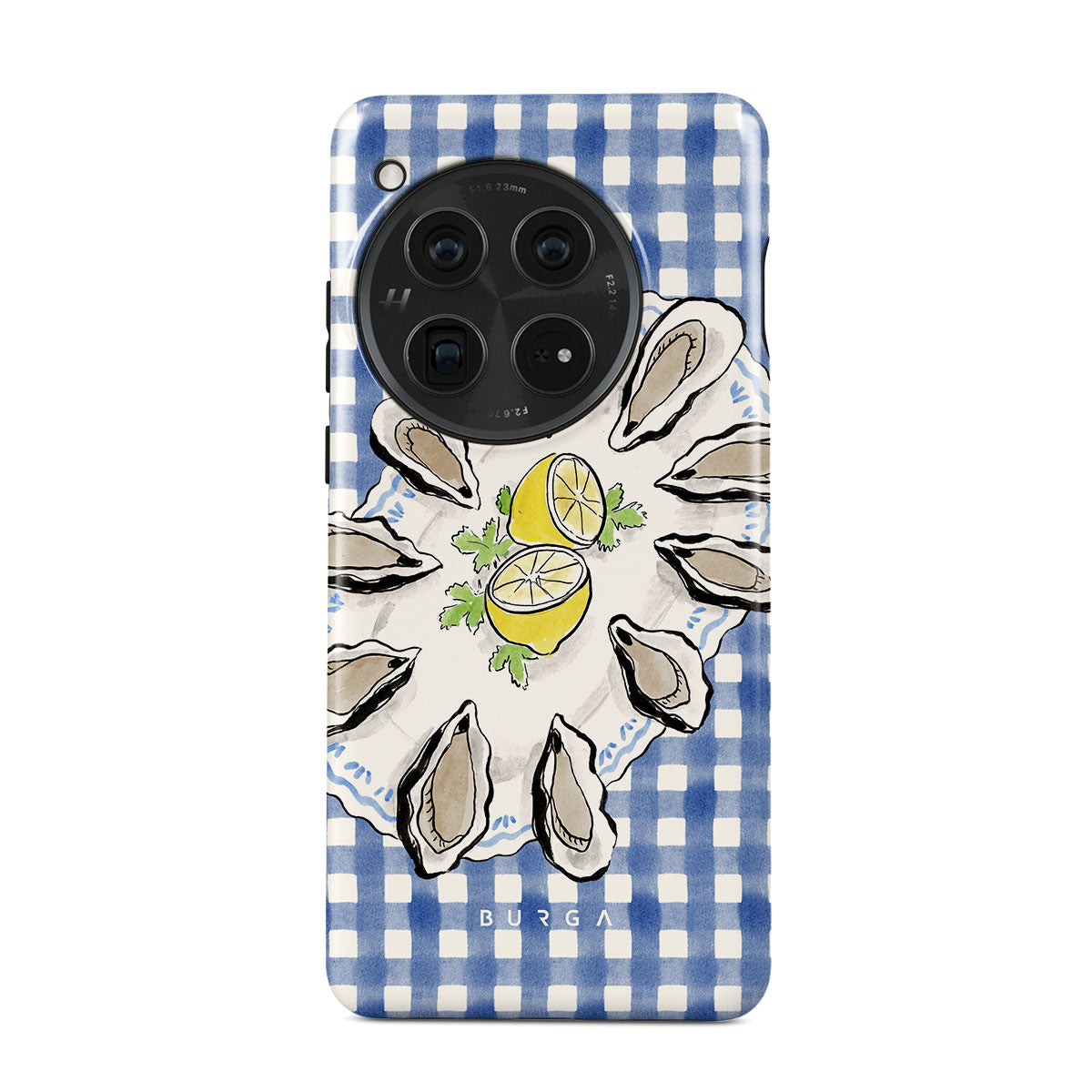 Kenmerken van dit design: Oesters, citroen, blauwe gingham, frisse kustmotieven, zachte pasteltinten.