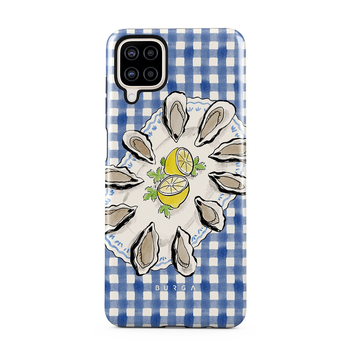 Kenmerken van dit design: Oesters, citroen, blauwe gingham, frisse kustmotieven, zachte pasteltinten.