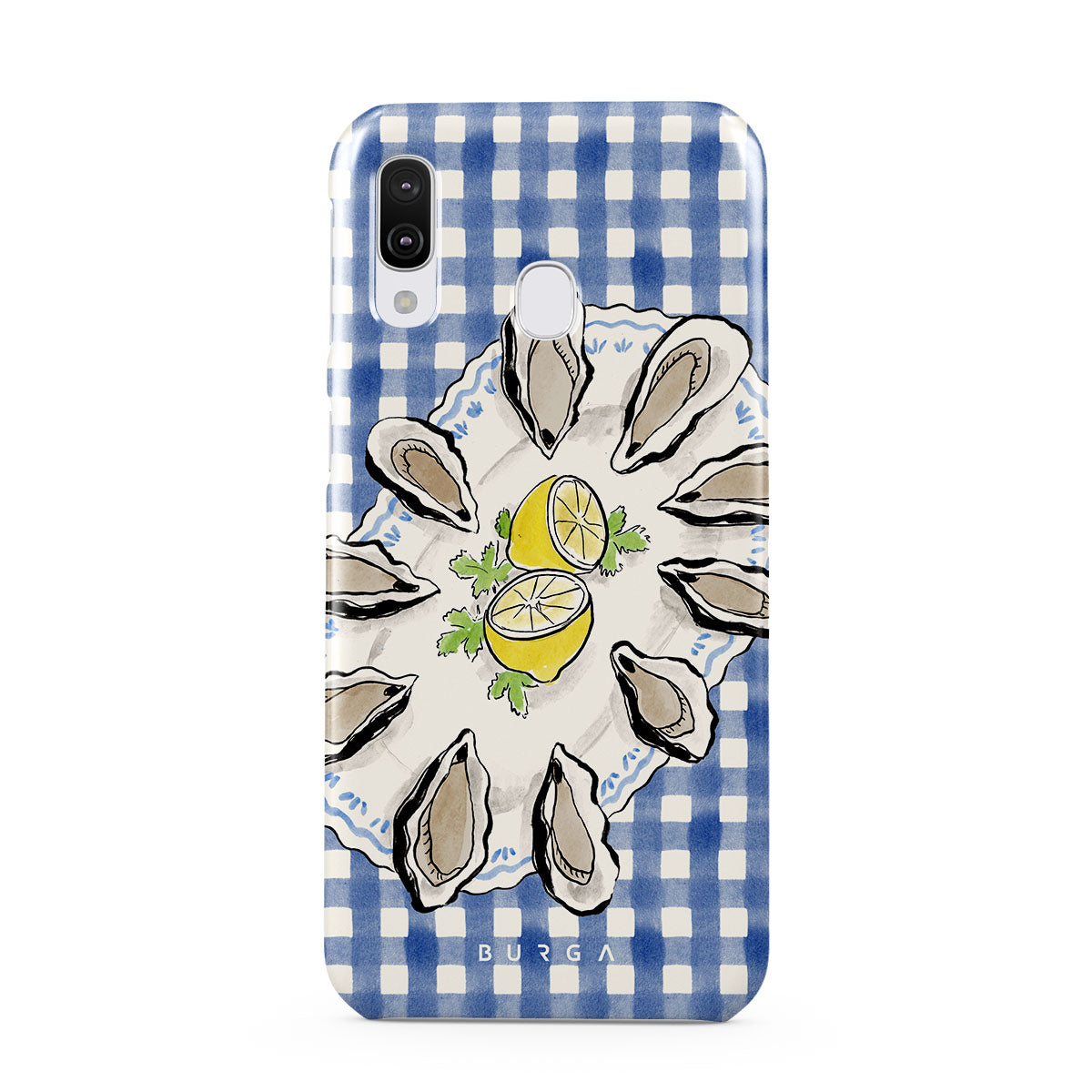 Kenmerken van dit design: Oesters, citroen, blauwe gingham, frisse kustmotieven, zachte pasteltinten.