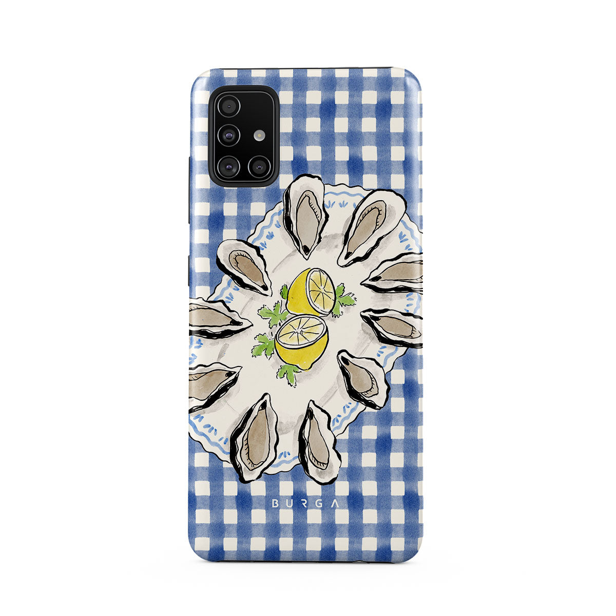 Kenmerken van dit design: Oesters, citroen, blauwe gingham, frisse kustmotieven, zachte pasteltinten.