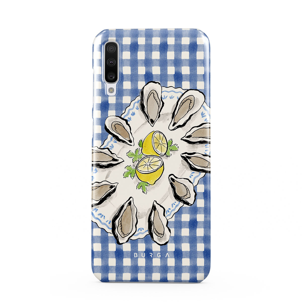 Kenmerken van dit design: Oesters, citroen, blauwe gingham, frisse kustmotieven, zachte pasteltinten.