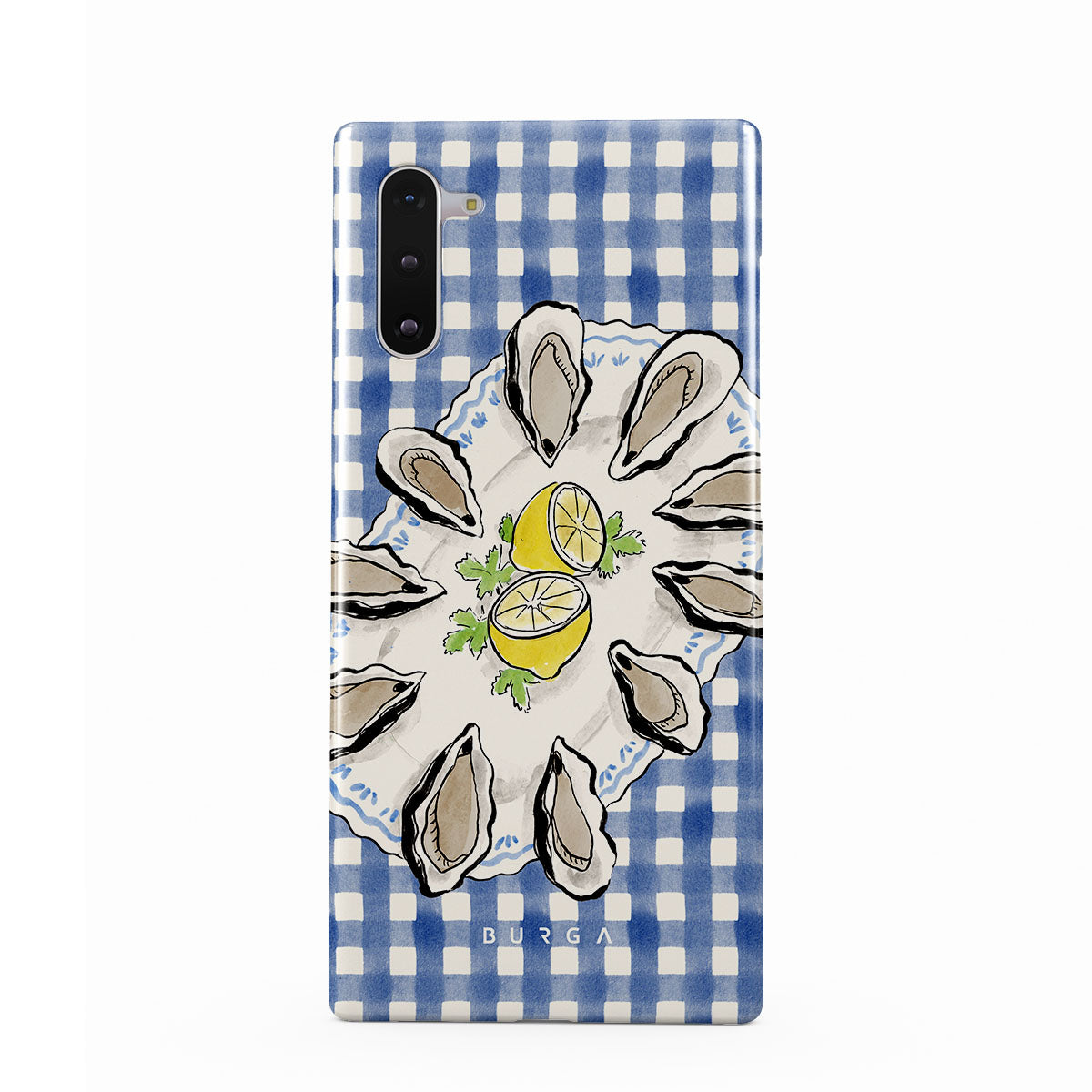 Kenmerken van dit design: Oesters, citroen, blauwe gingham, frisse kustmotieven, zachte pasteltinten.