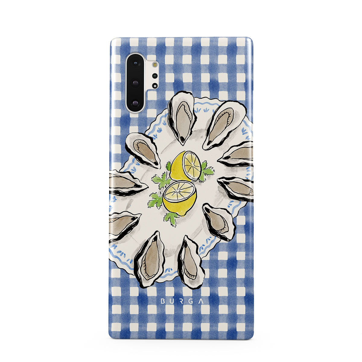 Kenmerken van dit design: Oesters, citroen, blauwe gingham, frisse kustmotieven, zachte pasteltinten.
