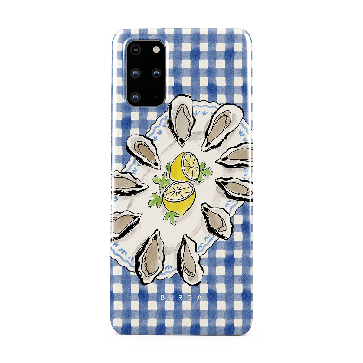 Kenmerken van dit design: Oesters, citroen, blauwe gingham, frisse kustmotieven, zachte pasteltinten.