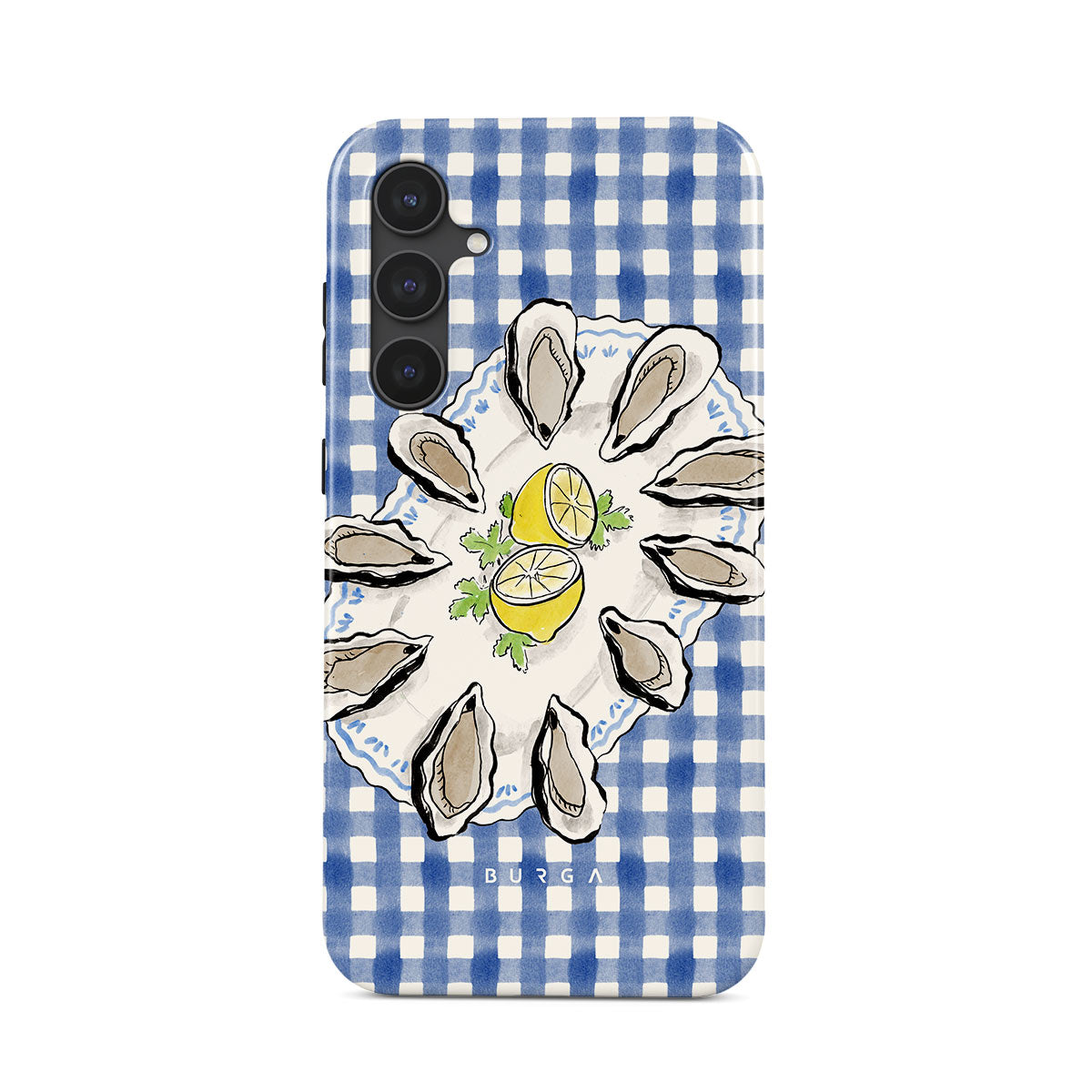 Kenmerken van dit design: Oesters, citroen, blauwe gingham, frisse kustmotieven, zachte pasteltinten.