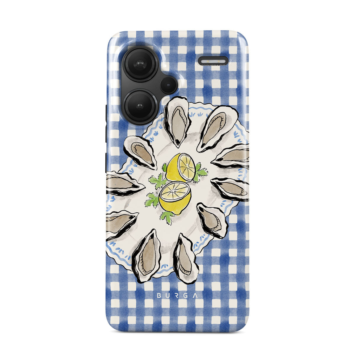 Kenmerken van dit design: Oesters, citroen, blauwe gingham, frisse kustmotieven, zachte pasteltinten.