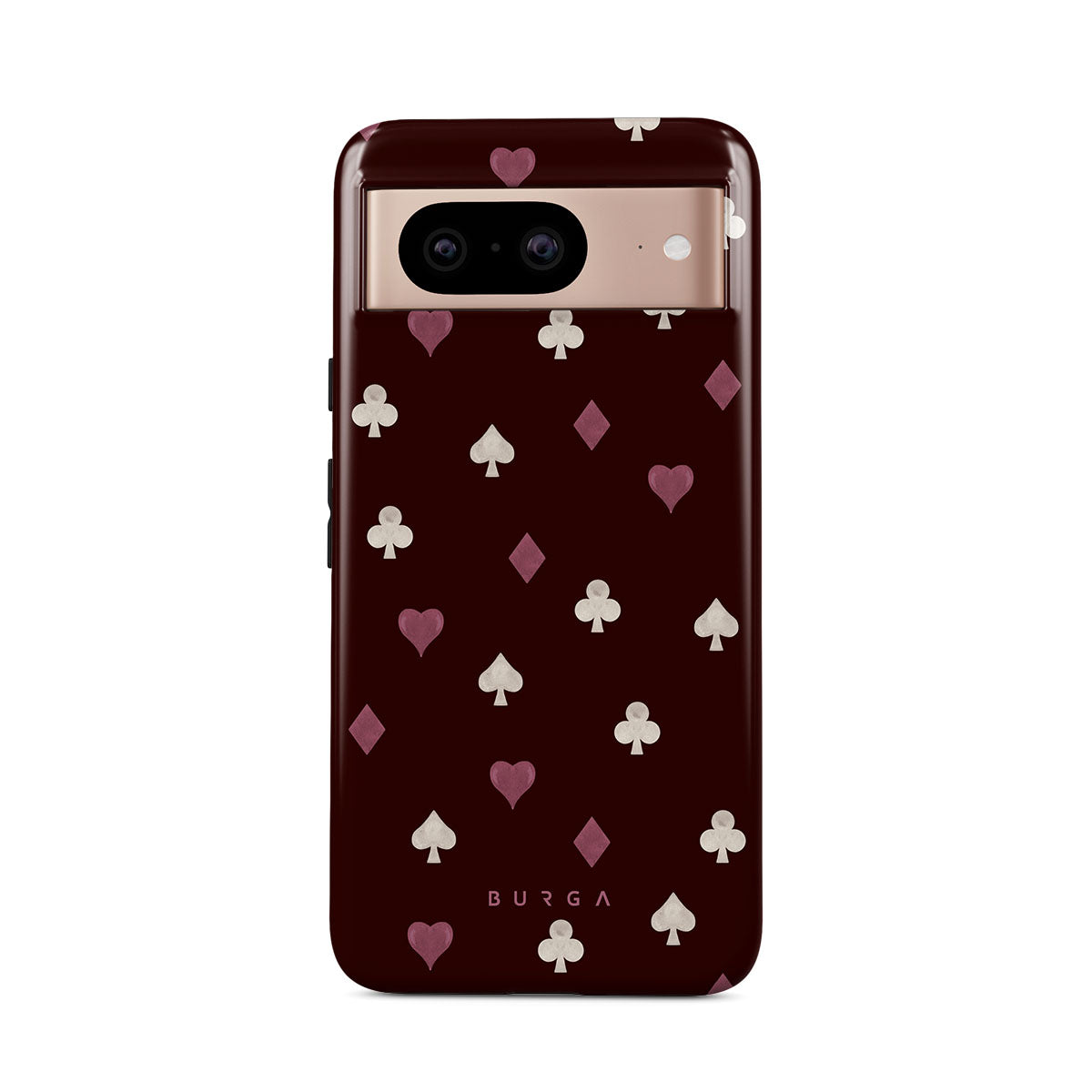Kenmerken van dit design: kaartspel symbolen, harten, schoppen, ruiten, klaveren, bordeauxrode achtergrond