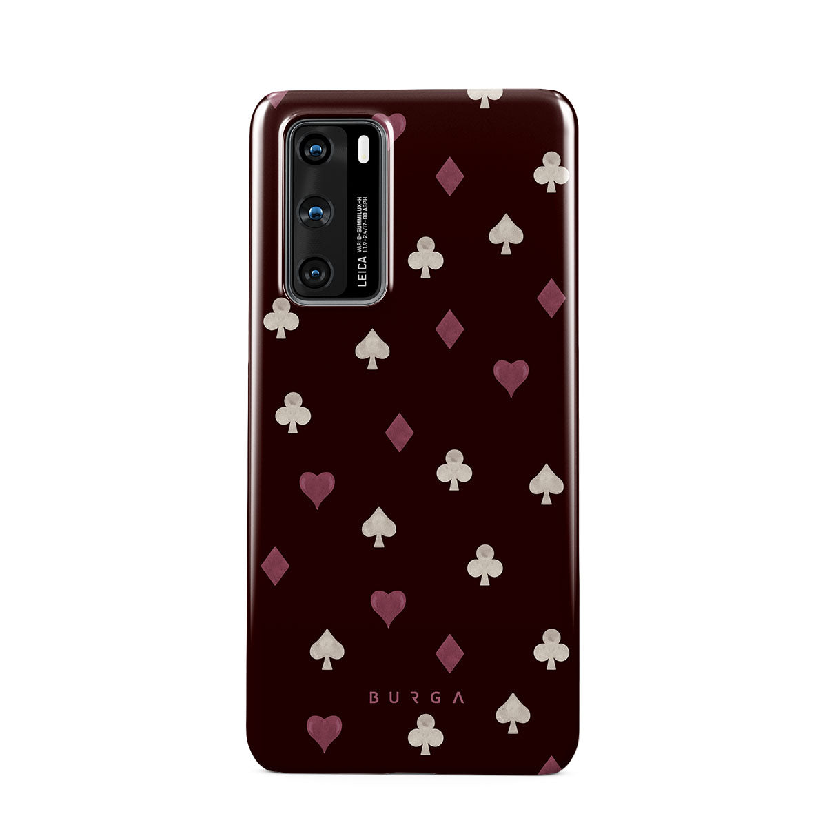 Kenmerken van dit design: kaartspel symbolen, harten, schoppen, ruiten, klaveren, bordeauxrode achtergrond