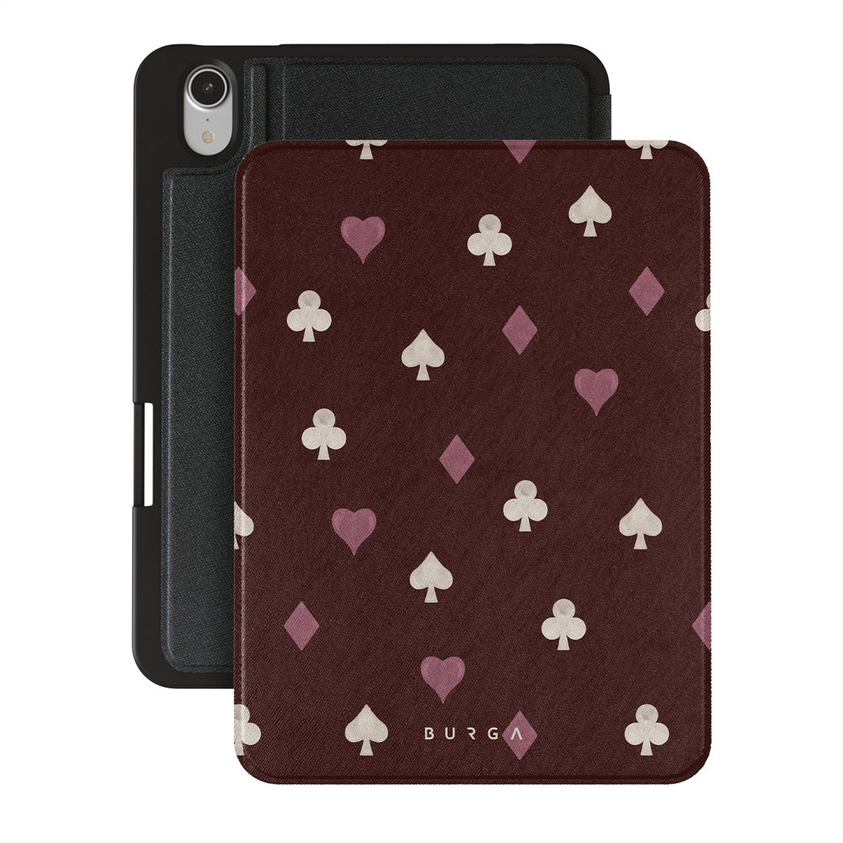 Kenmerken van dit design: kaartspel symbolen, harten, schoppen, ruiten, klaveren, bordeauxrode achtergrond