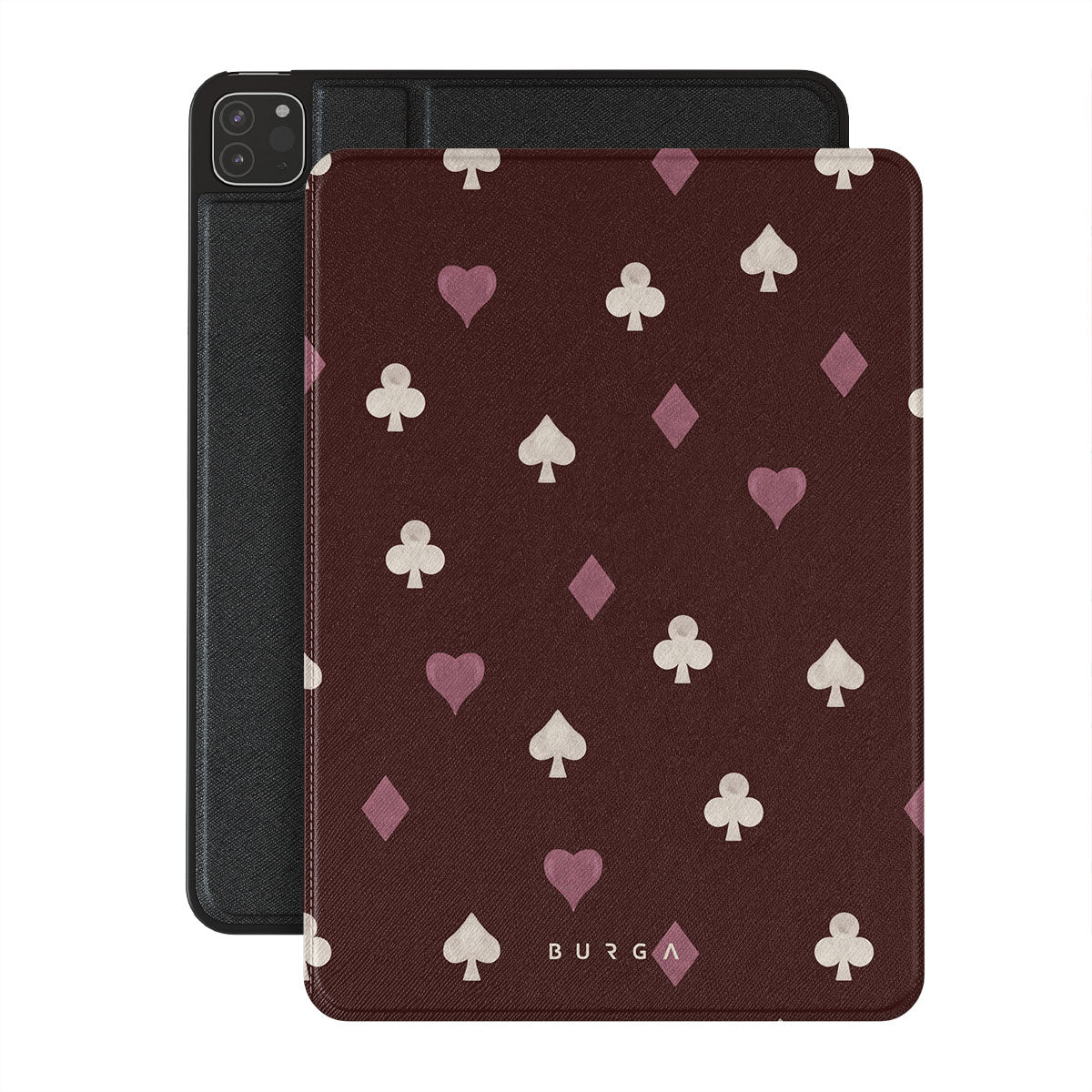 Kenmerken van dit design: kaartspel symbolen, harten, schoppen, ruiten, klaveren, bordeauxrode achtergrond