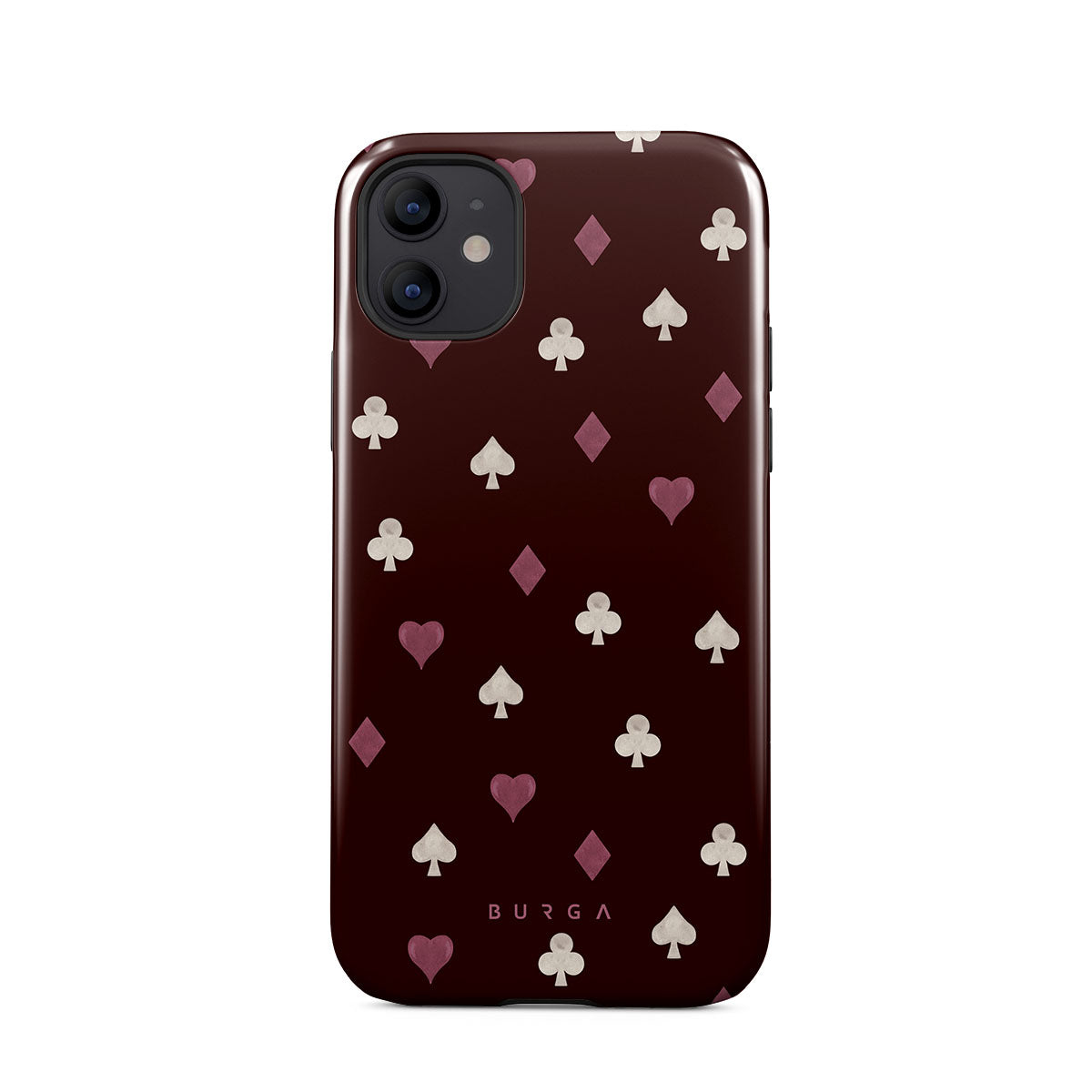 Kenmerken van dit design: kaartspel symbolen, harten, schoppen, ruiten, klaveren, bordeauxrode achtergrond