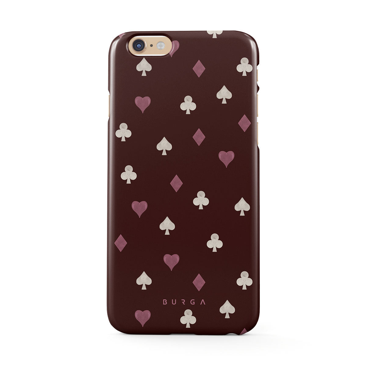 Kenmerken van dit design: kaartspel symbolen, harten, schoppen, ruiten, klaveren, bordeauxrode achtergrond