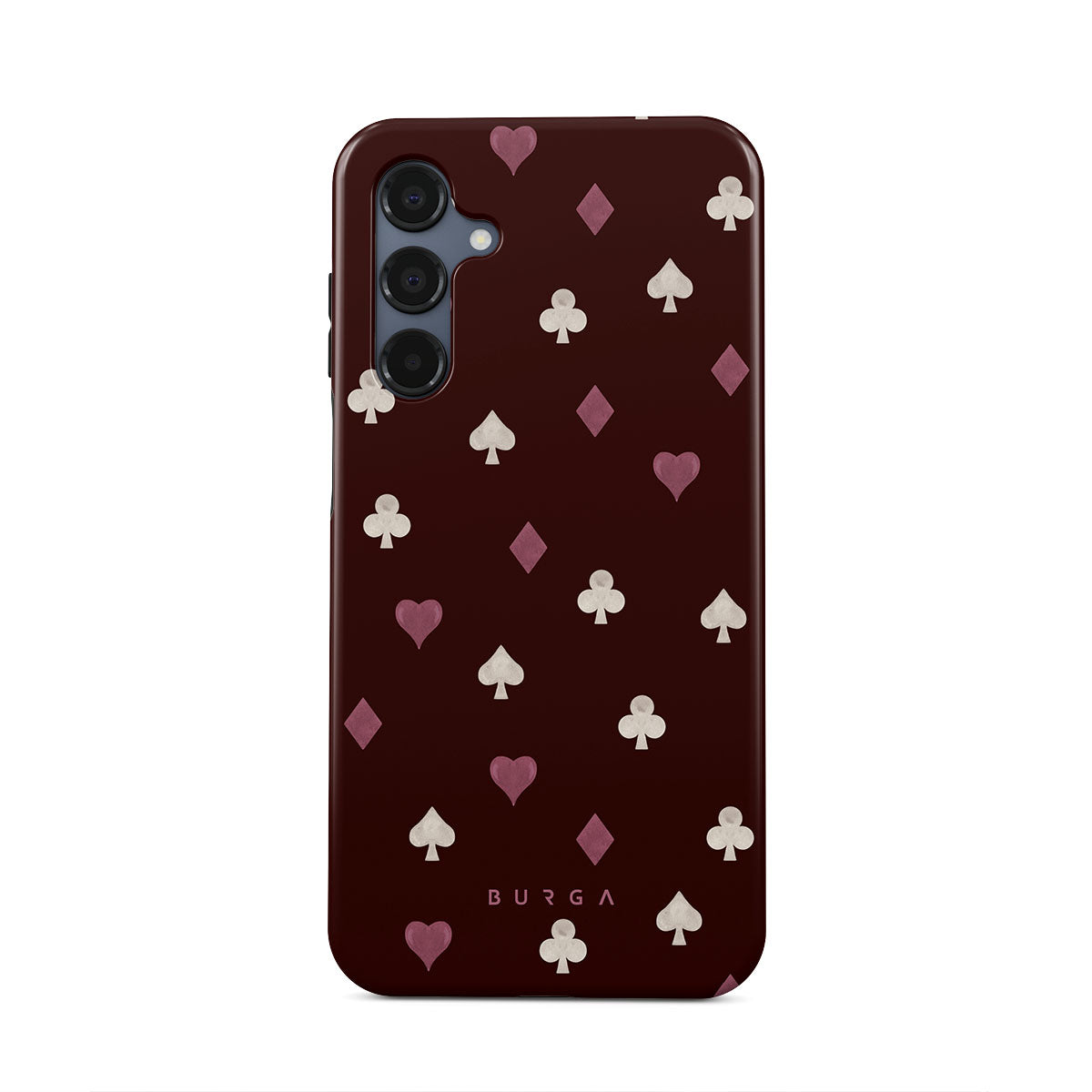 Kenmerken van dit design: kaartspel symbolen, harten, schoppen, ruiten, klaveren, bordeauxrode achtergrond