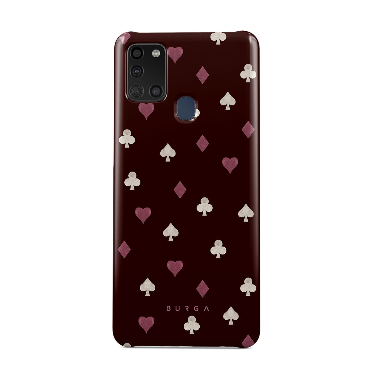 Kenmerken van dit design: kaartspel symbolen, harten, schoppen, ruiten, klaveren, bordeauxrode achtergrond