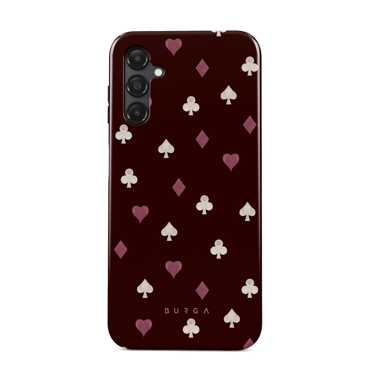 Kenmerken van dit design: kaartspel symbolen, harten, schoppen, ruiten, klaveren, bordeauxrode achtergrond