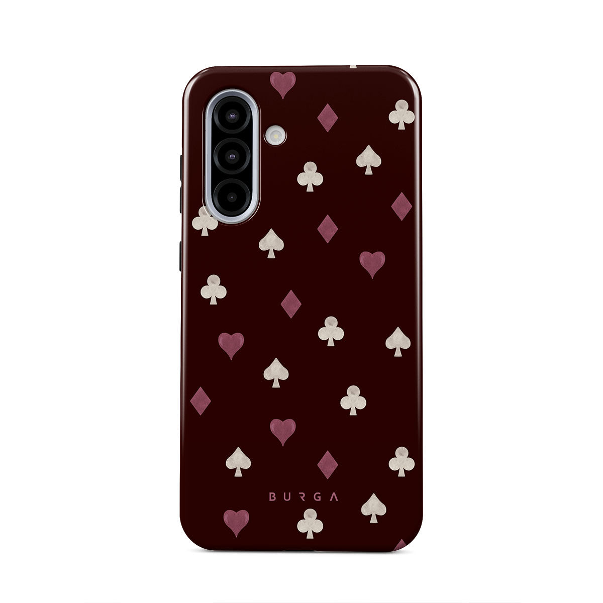 Kenmerken van dit design: kaartspel symbolen, harten, schoppen, ruiten, klaveren, bordeauxrode achtergrond