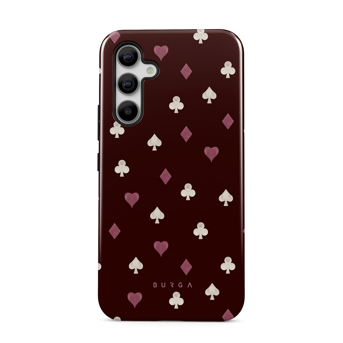 Kenmerken van dit design: kaartspel symbolen, harten, schoppen, ruiten, klaveren, bordeauxrode achtergrond