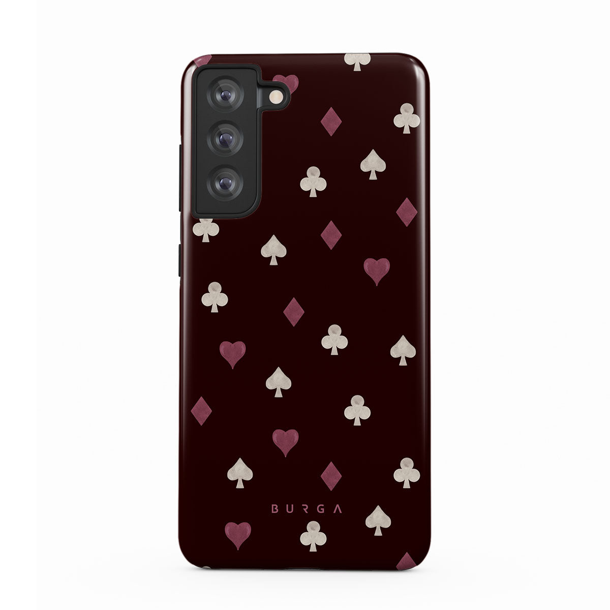 Kenmerken van dit design: kaartspel symbolen, harten, schoppen, ruiten, klaveren, bordeauxrode achtergrond