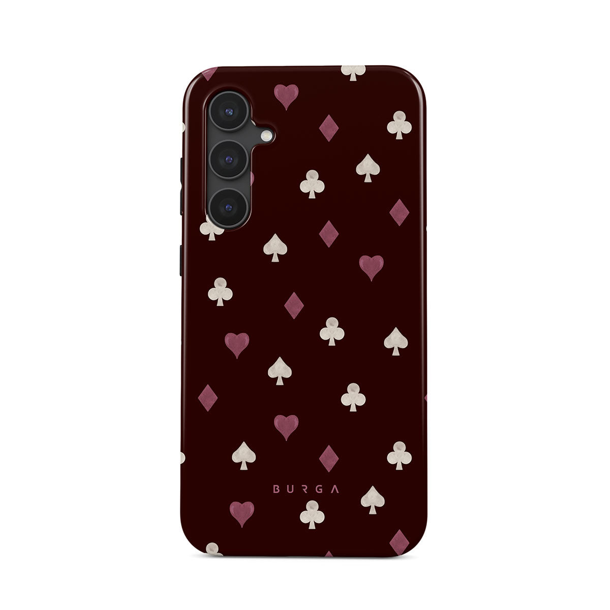 Kenmerken van dit design: kaartspel symbolen, harten, schoppen, ruiten, klaveren, bordeauxrode achtergrond
